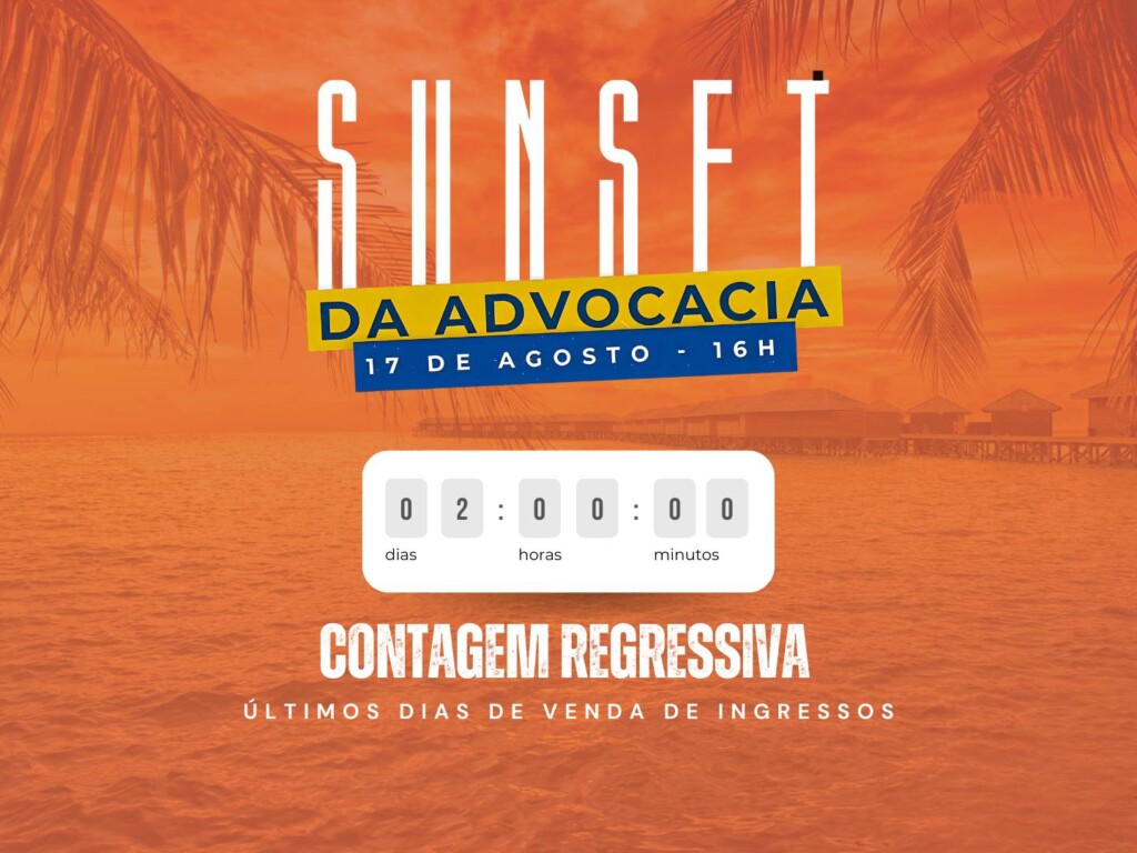 A 2ª Subseção da OAB-ES está nos últimos dias de venda de ingressos para a primeira edição local do “Sunset da Advocacia”. O evento, marcado para o dia 17 de agosto, promete ser um dos destaques do ano. Para não perdê-lo, os interessados têm que se apressar: a venda de convites será encerrada nesta sexta-feira, 2 de agosto.