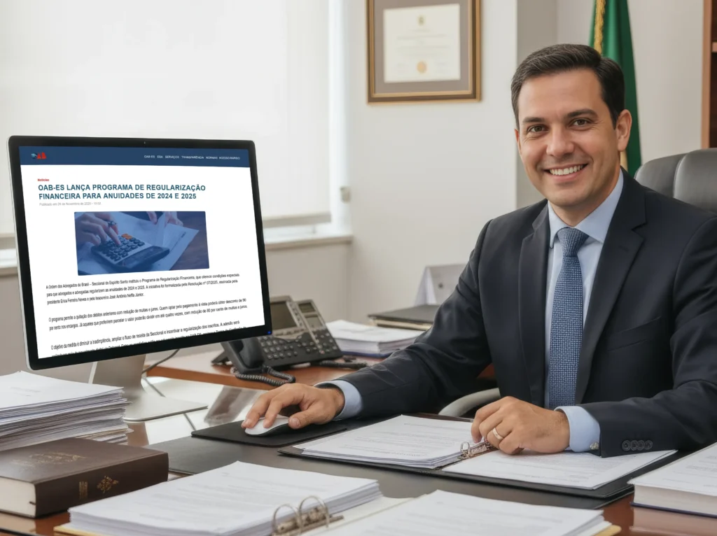 A Ordem dos Advogados do Brasil – Seccional do Espírito Santo (OAB-ES) aprovou, no último dia 17, um programa de regularização financeira que oferece descontos de até 90% sobre multas e juros de mora incidentes nas anuidades de 2024 e 2025. A Resolução nº 7/2025, assinada pela presidente Erica Ferreira Neves e pelo tesoureiro José Antônio Neffa Júnior, estabelece condições excepcionais de pagamento para advogados inadimplentes, com prazo de adesão limitado até a próxima sexta-feira (28). A medida, conforme justificativa do documento, busca ampliar o fluxo de receitas da Seccional e reduzir os índices de inadimplência registrados entre os profissionais inscritos.